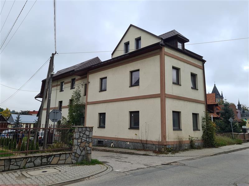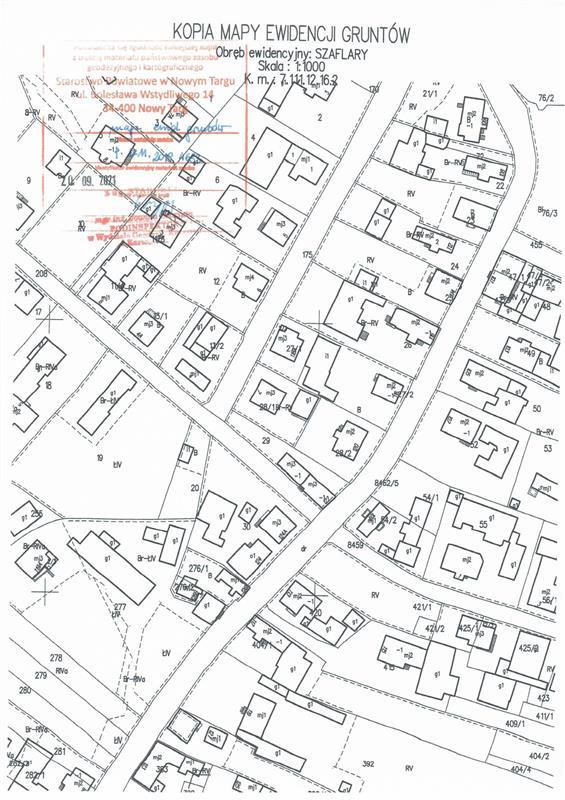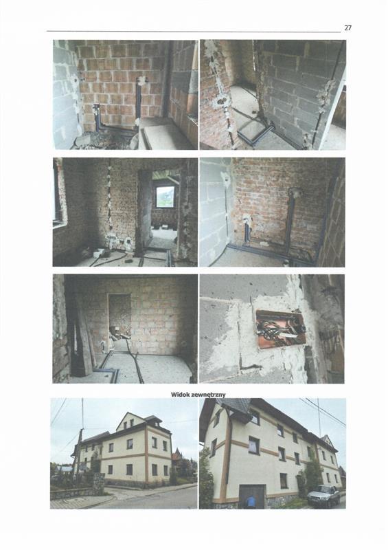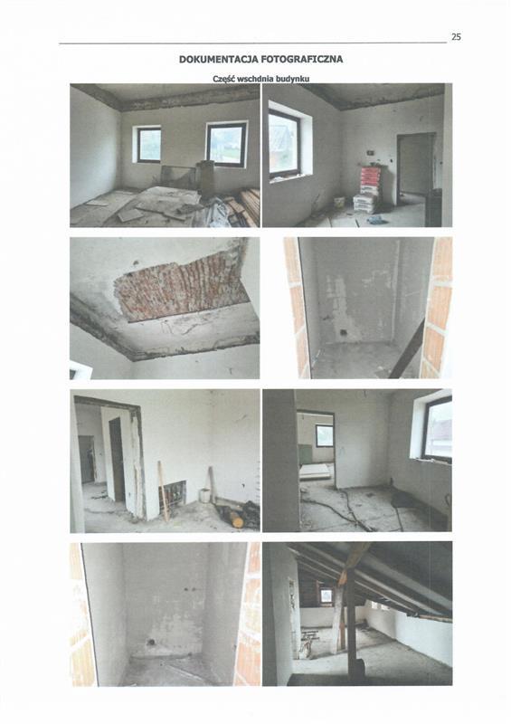 Nieruchomość zlokalizowana jest przy ul. Augustyna Suskiego na zbiegu z ulicą 75-lecia Ruchu Ludowego w odległości ok. 150 m od Rynku w Szaflarach i znajdującego się na nim kościoła parafialnego oraz ok. 200 m od szkoły podstawowej. Na nieruchomości posadowiony budynek mieszkalny oznaczony nr 122. Najbliższe otoczenie nieruchomości stanowi zabudowa mieszkaniowa jednorodzinna oraz zabudowa usługowa. Obszar na którym znajduje się działka ewid. nr 29 nie jest objęty miejscowym planem zagospodarowania przestrzennego. Przeznaczenie terenu ustalono w oparciu o ustalenia Studium Uwarunkowań i Kierunków Zagospodarowania Przestrzennego Gminy Szaflary uchwalonego uchwałą Rady Gminy Szaflary nr XLI/188/98 z dnia 30.03.1998 z późniejszymi zmianami. Wg ustaleń studium teren na którym znajduje się działka ewid. nr 29 oznaczony został jako teren zabudowany oraz teren dróg. Stan techniczno-użytkowy. Nieruchomość zabudowana wolnostojącym budynkiem mieszkalnym składającym się z dwóch części posiadających niezależne wejścia. Nieruchomość posiada bezpośredni dostęp do drogi publicznej z dwóch stron. Nieruchomość w zasięgu energetycznej, telefonicznej, wodociągowej oraz kanalizacyjnej sieci uzbrojenia terenu. Teren wokół budynku niezagospodarowany. Budynek mieszkalny. Bryła obiektu to budynek o konstrukcji murowanej o trzech kondygnacjach nadziemnych (parter, I piętro, poddasze), częściowo podpiwniczony wybudowany ok. 1920r oraz przebudowany w latach 2007/2011. Aktualnie budynek w trakcie przerwanych prac remontowych podczas których m.in. przebudowano wnętrza, wykonano nową więźbę dachową, pokryto dach, wykonano instalację elektryczną, częściowo wykonano instalację wod-kan. oraz C.O., ocieplono ściany zewnętrzne oraz wykonano elewację. Ławy fundamentowe kamienno-betonowe. Ściany zewnętrzne piwnic, parteru, piętra oraz poodasza murowane z cegły, docieplone styropianem. Strop nad piwnicą łukowy z cegły. Strop nad parterem iraz piętrem betonowy. Brak stropu nad poddaszem. Schody zewnętrzne oraz wewnętrzne betonowe. Dach o konstrukcji drewnianej pokryty blachodachówką. Rynny i rury spustowe częściowo uszkodzone. Stolarka okienna PCV (jedno okno wybite). Elewacja budynku na poziomie przyziemia obłożona kamieniem (częściowo wymagającym uzupełnienia) a na pozostałej części pokryta tynkiem akrylowym. Tynki wewnętrzne wykonane w ok. 30 %. Posadzki surowe. Brak wykończenia ścian wewnętrznych, posadzek, schodów. W budynku częściowo zostały wykonane również instalacje C.O., wodociągowa oraz kanalizacyjna wymagająca dokończenia (brak kotła, kaloryferów). Program użytkowy. Przyziemie od strony zachodniej: garaż z klatką schodową na parter oraz I piętro pow. użytkowa 15,62 m2, pom. gospodarcze: 13,10 m2, pom. gospodarcze: 12,87 m2. Parter od strony zachodniej: pokój 13,02 m2, pokój 12,81 m2, łazienka 5,04 m2, przedpokój: 6,42 m2. I Piętro od strony zachodniej:  pokój 14,59 m2, pokój 14,82 m2, łazienka 3,32 m2, przedpokój: 6,04 m2. Parter od strony wschodniej:  pokój 23,17 m2, pokój z aneksem: 15,38 m2, łazienka 2,98 m2, przedpokój: 4,48 m2. I Piętro od strony wschodniej: pokój 23,01 m2, pokój z aneksem: 13,93 m2, łazienka 2,95 m2, przedpokój: 3,54 m2. Poddasze od strony wschodniej: otwarta przestrzeń 37,84 m2, łazienka 2,85 m2.